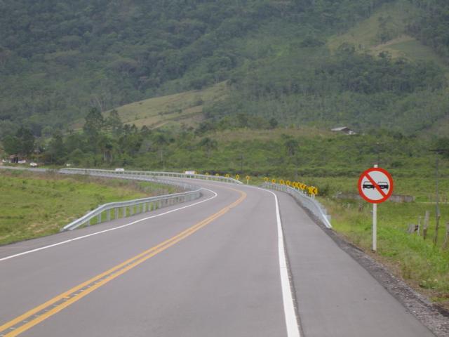 Na imagem: Serviços de pavimentação asfáltica, calçadas e travessia para pedestres executada neste trecho da rodovia, incluindo a sinalização, construção de escada e plantio de gramíneas no talude do aterro.